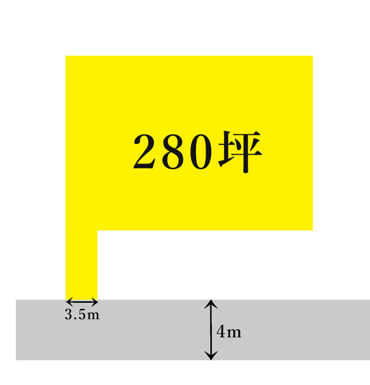 仮に50坪くらいの程よい大きさの旗竿地だとしたら[坪35.7万円×50坪]で1785万円ですね。